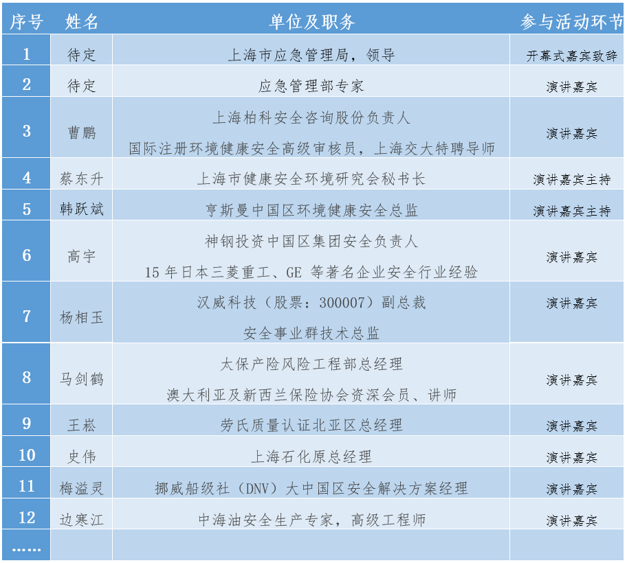 主办单位:上海柏科管理咨询股份有限公司、上海市健康安全环境研究会