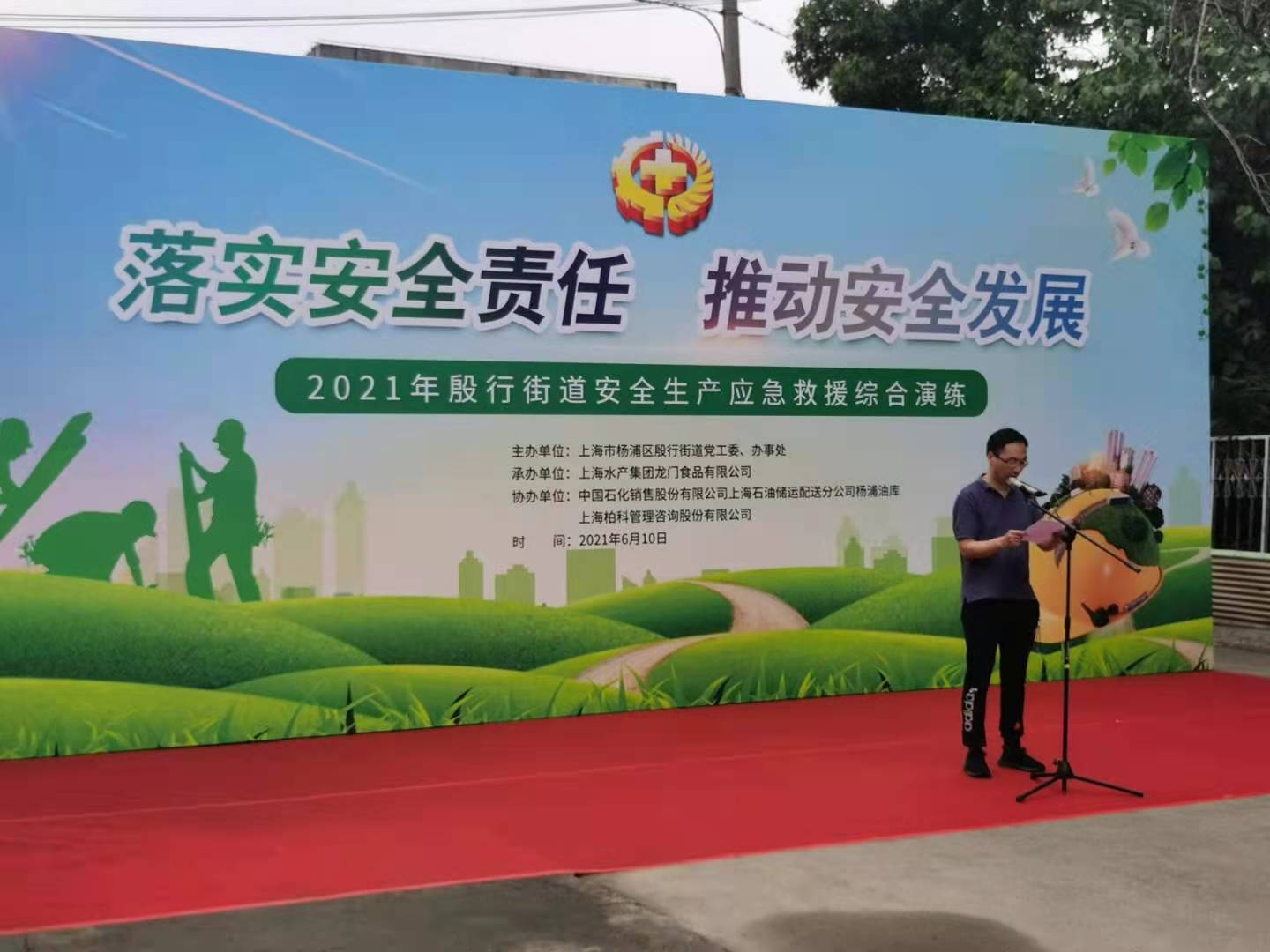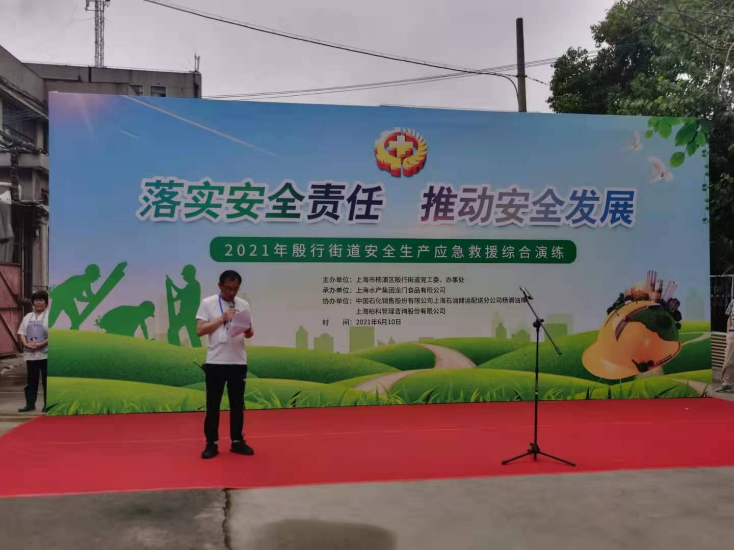 6月10日下午,由杨浦区殷行街道党工委、办事处主办,上海水产集团龙门食品有限公司承办,上海柏科管理咨询股份有限公司协办的”2021年殷行街道安全生产应急救援综合演练”在龙门食品有限公司顺利举办。此次活动旨在为完善街道各类安全机制,提高群众安全意识,使应急救援人员掌握应急救援程序和方法。检验应急救援队伍应对各类突发事故的快速反应能力、应急处理能力和协调作战能力,同时提高突发事故灾害应急预案的可操作性,检验各单位快速反应能力,使参加演习人员明白预警信号、撤离路线、体验火灾逃生和危化品泄漏事故场景。